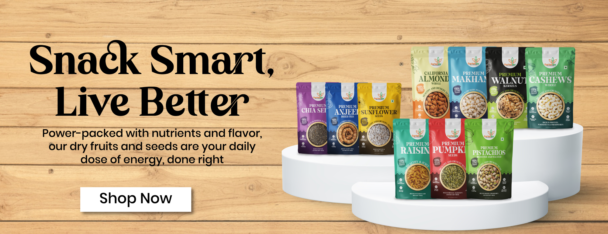 Fuel your day with our healthy, ready-to-eat dry fruit mixes. Shop Now