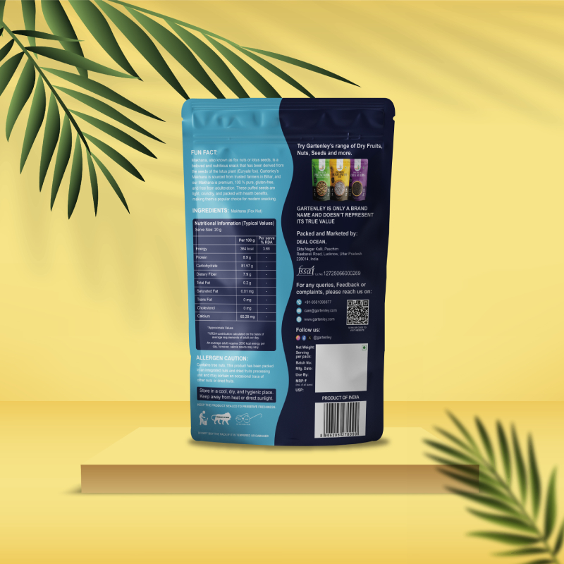 Gartenley Makhana, also known as Fox Nuts or Popped Lotus Seeds, is a traditional Indian superfood that is light, airy, and incredibly nutritious. Sourced from the best aquatic farms, our premium makhana delivers a delightful, satisfying crunch with a neutral flavour, making it the perfect canvas for your favourite seasonings.